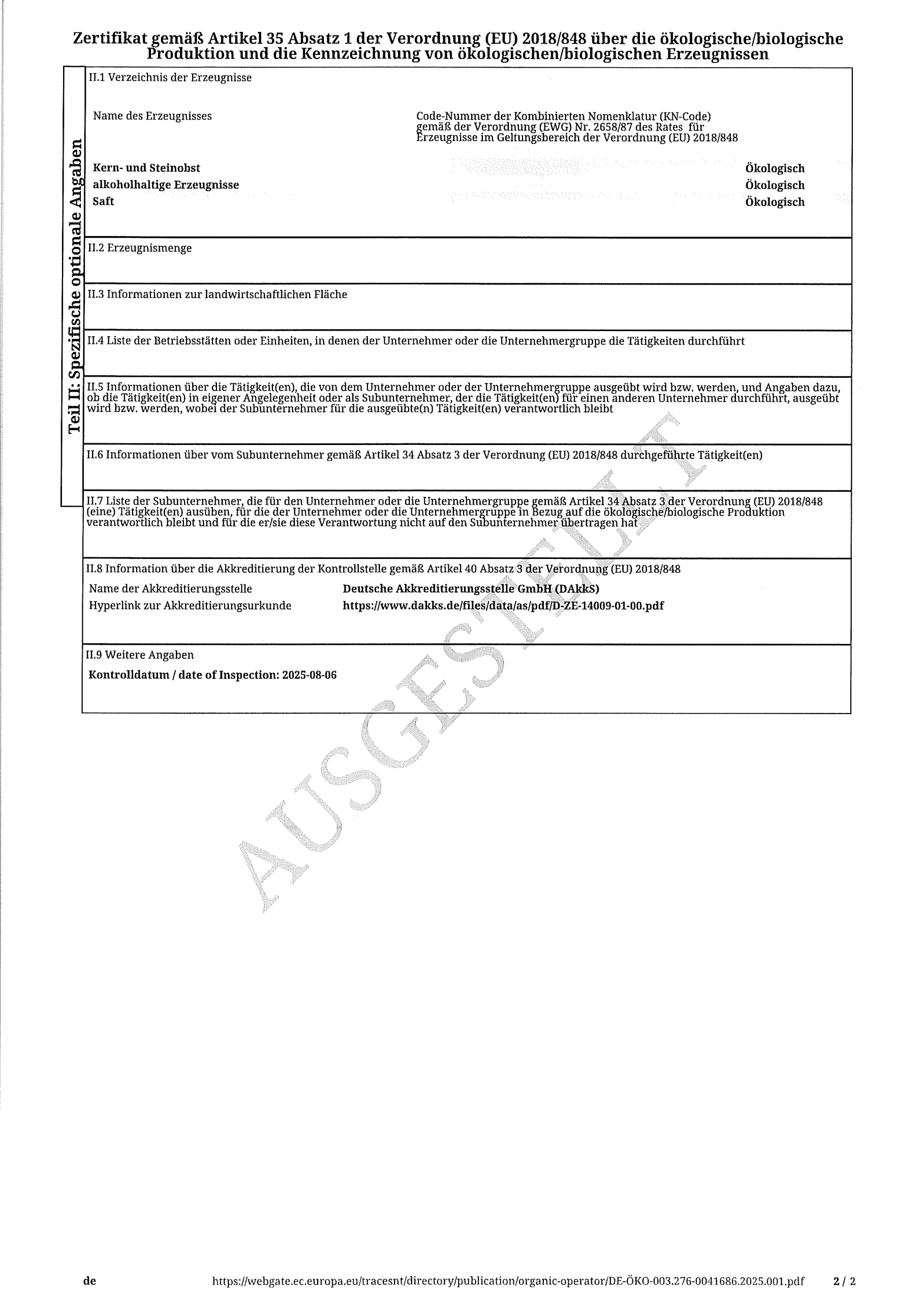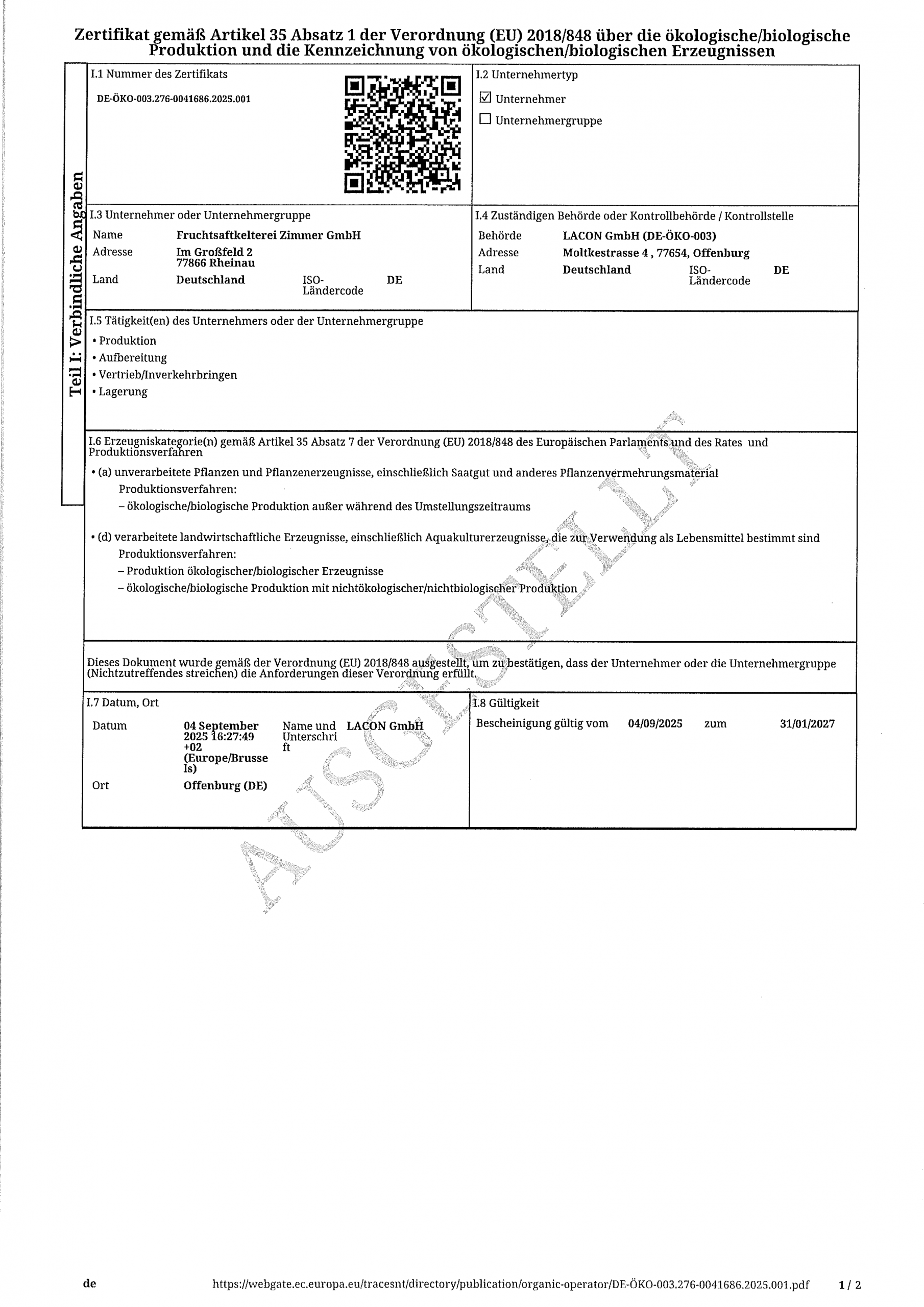 Lacon 2024 – Prüfbescheinigung des Lacon Institut für ökologische Erzeugnisse (Download PDF)